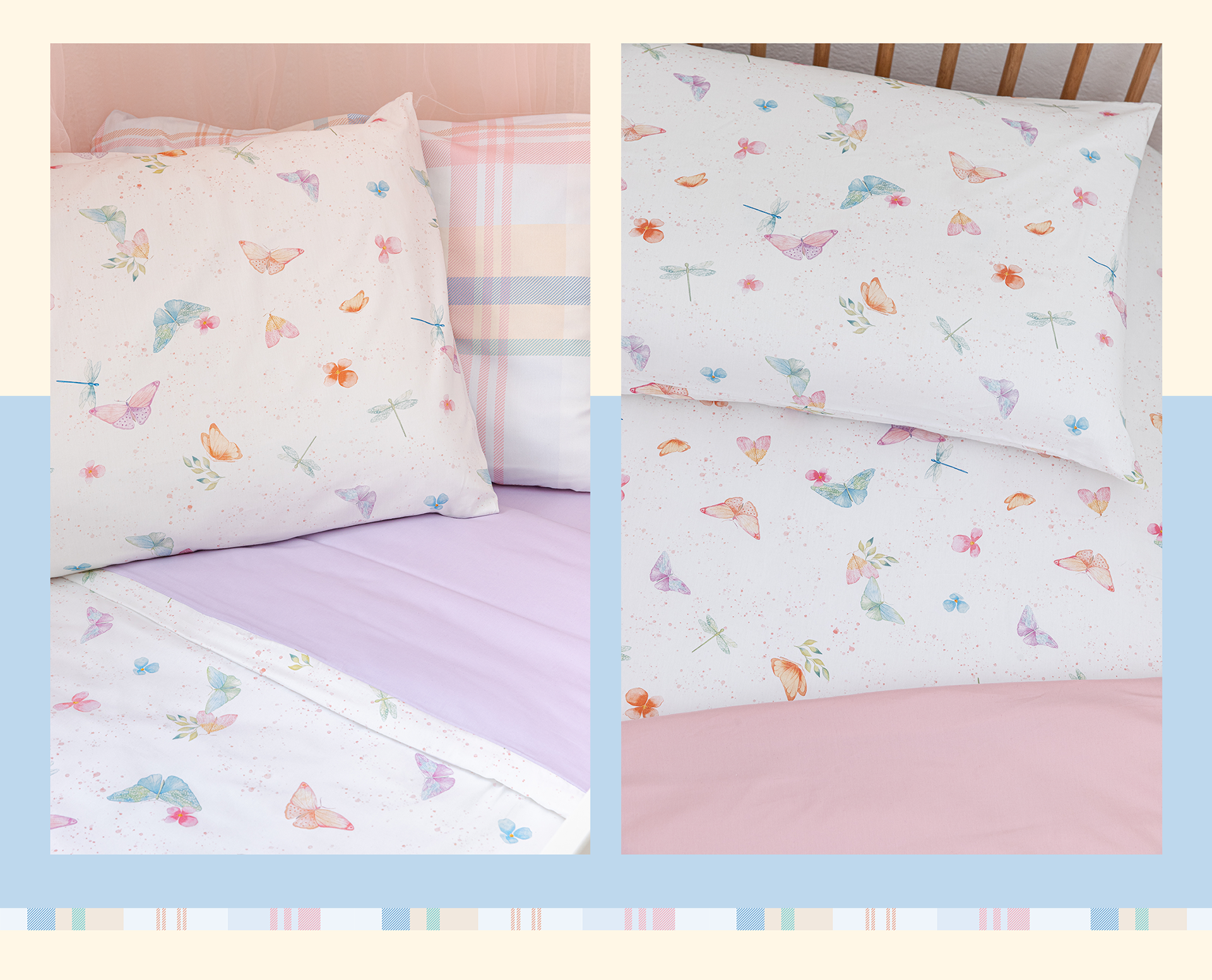 Roupas de cama e estampas para o quarto desenvolvidas com